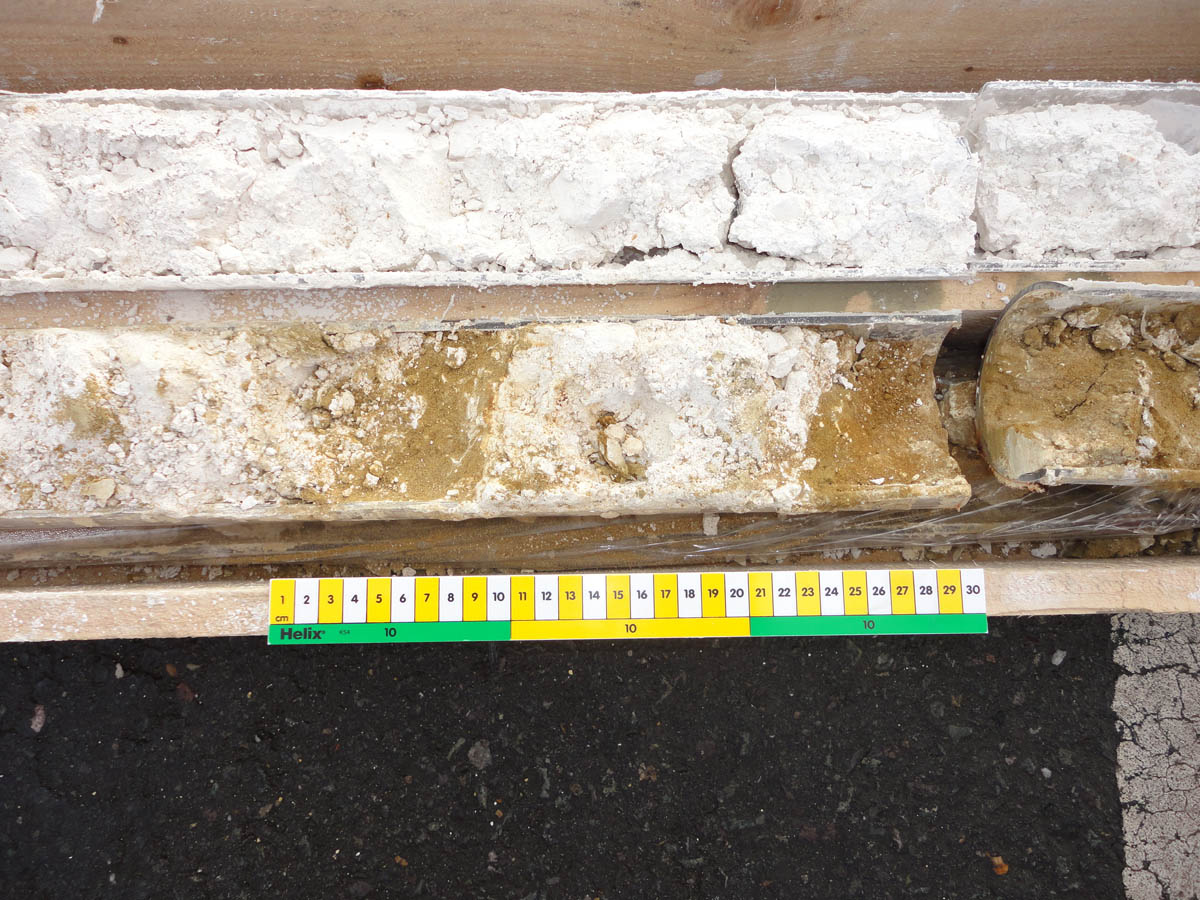 By inserting clear polycarbonate liners inside the core barrel prior to sampling, the continuous soil profiles were encapsulated within 1.5m lengths, prior to detailed centimetre scale logging by the on-site geologist. The textures and sedimentary fabrics preserved within these were nothing short of a revelation, with sedimentary layering and gradations evident allowing inferences to be drawn regarding the geological history of the feature.