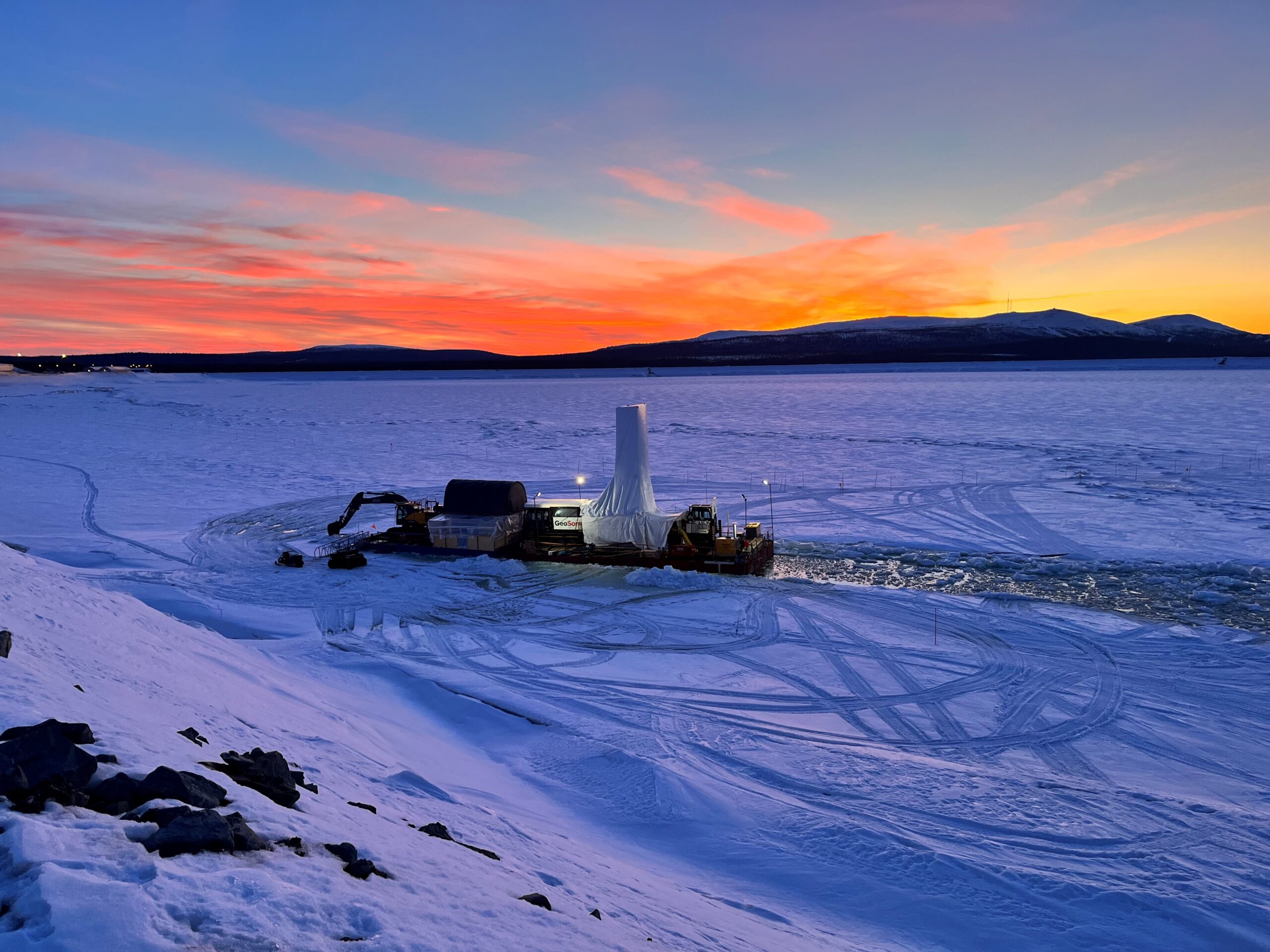 Through 2022 GeoSonic Drilling completed a sonic drilling campaign as part of an ongoing geotechnical investigation on a large tailings storage facility at Boliden Aitik, Sweden’s largest open-pit copper mine. Working with BolidenKlohn Crippen BergerConeTec and Cambridge Insitu Ltd, the drilling campaign encompassed sonic drilling and sampling through rock fill, tailings and underlying superficial deposits before rotary coring to prove bedrock at depths of up to 70m. In-situ testing comprised down-hole CPT, shear vane testing, piston sampling and pressuremeter testing alongside SPT’s . Two rigs working twenty four hours through all seasons presented a particular challenge, including a portion of the works that were conducted overwater from a floating pontoon on the clarification pond in the depths of winter. Thanks to all of our crews involved in this project who have worked tirelessly to make it a success.